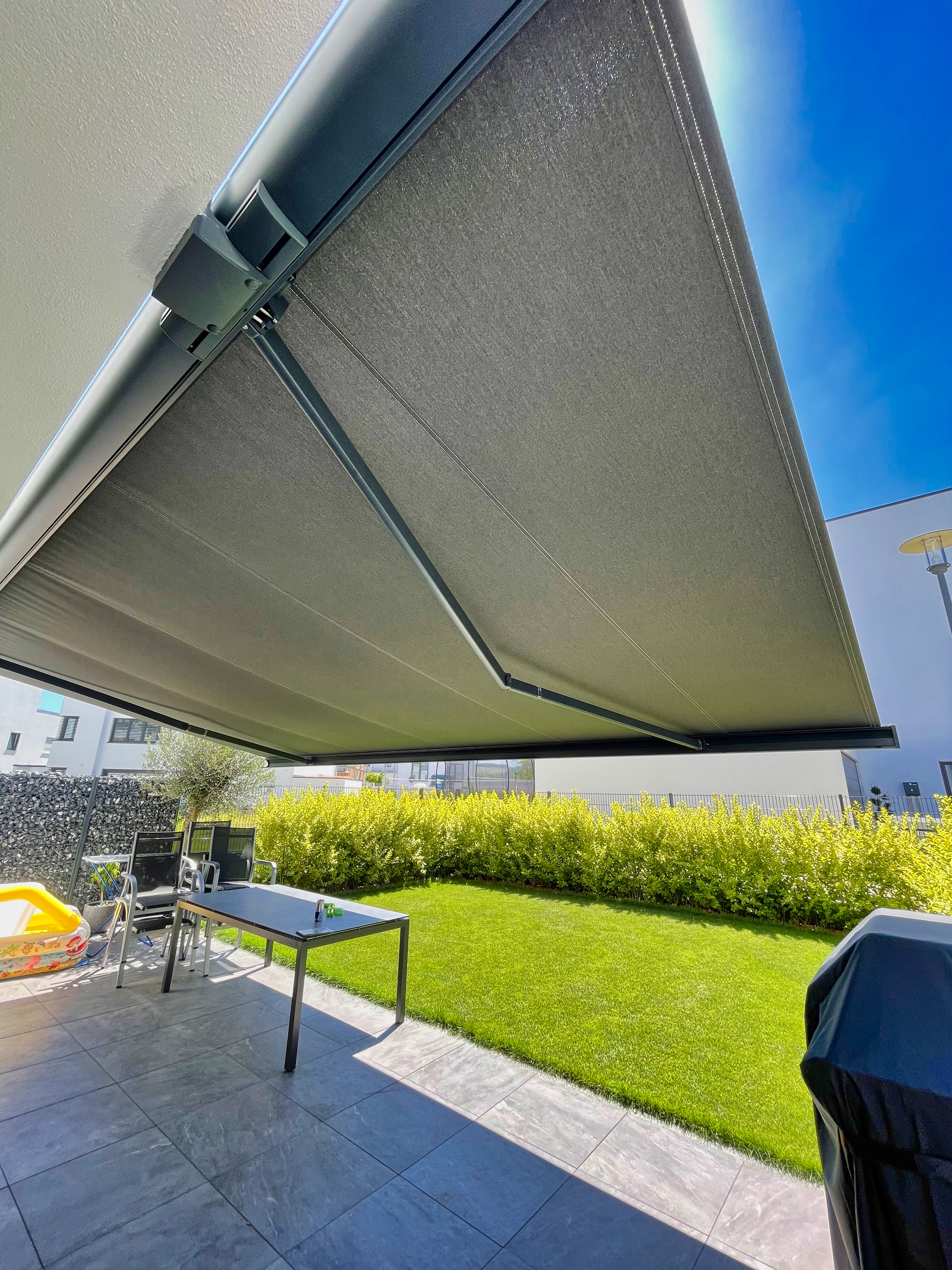 Überzeugen Sie sich selbst von der Qualität unserer Arbeit. In unserer Referenzgalerie finden Sie eine Auswahl abgeschlossener Projekte – von klassischen Markisen über elegante Terrassenüberdachungen bis hin zu modernen Lamellendächern.